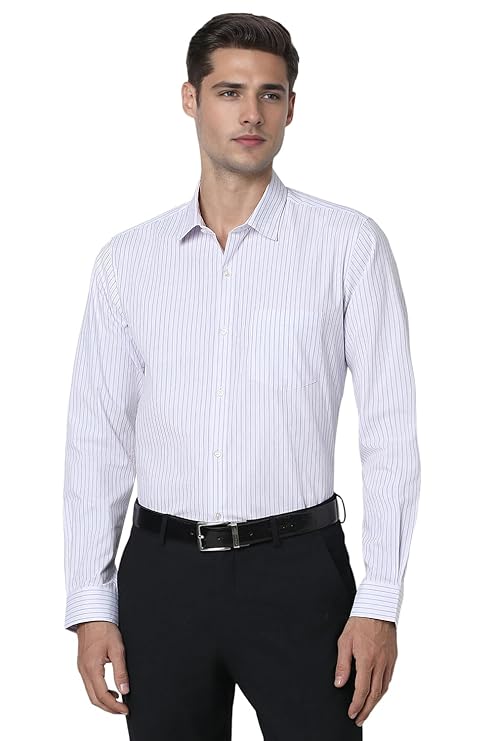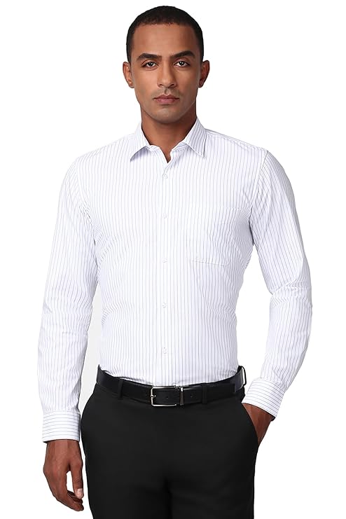 Peter England Men’s Striped Slim Fit Full Sleeve Formal Shirt | Cotton-Rich | Wonder Fabric | Pin-Point Oxford Weave