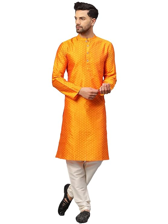 LATEST CHIKAN Men’s Silk Chikankari Kurta with Cream Churidar | Festive Set – KP Silk BANARSI